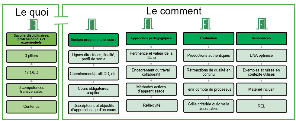 Image 1 : Les portes d’entrée du développement durable dans les activités d’enseignement. Partie 1. (2024). Maryse Beaulieu, Mélanie Cabana, Marie-Sara Soukpa. Université de Sherbrooke. CC-BY.